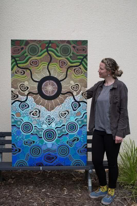 Birthing With Country. Acrylic on canvas, 2017. Calvary Hospital Birth Centre.