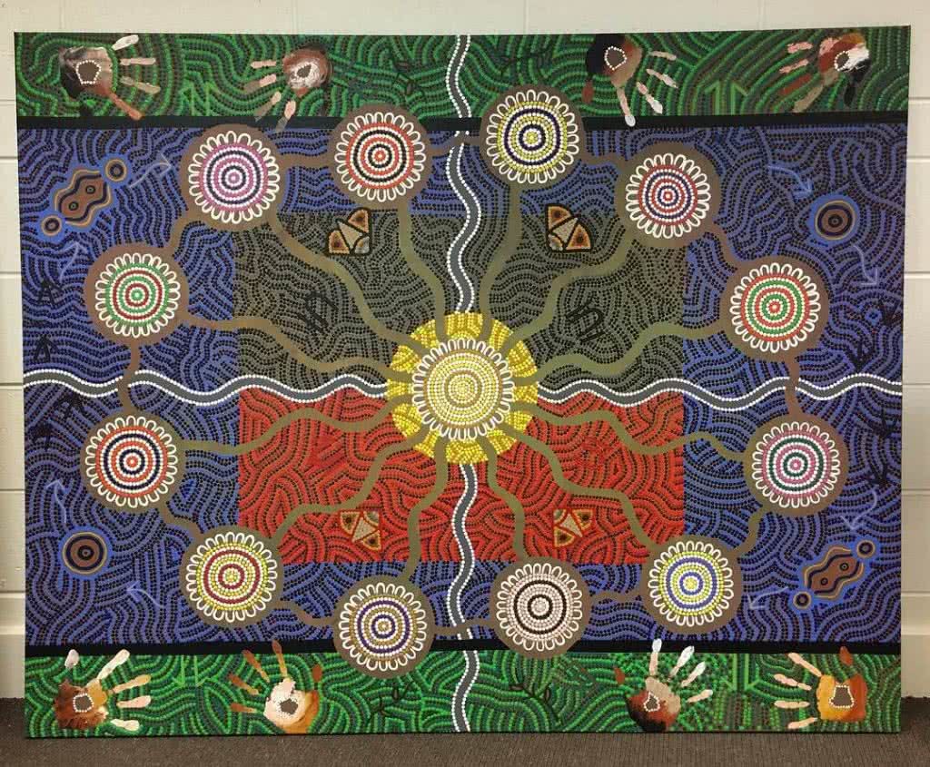 Water Dreaming. ACT Education Directorate RAP. Acrylic on canvas, 2015.