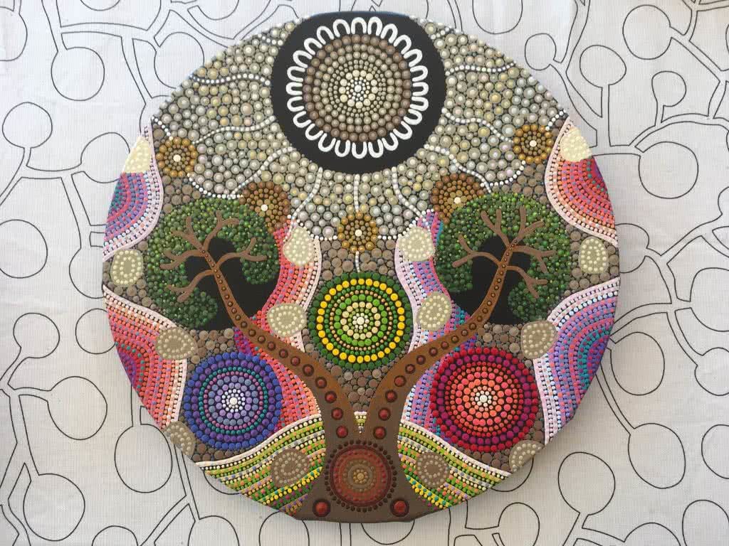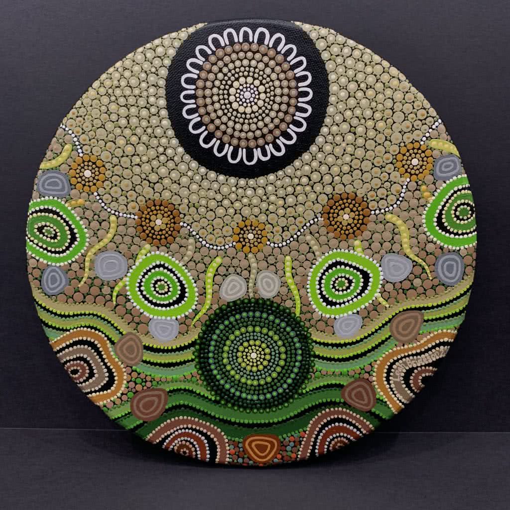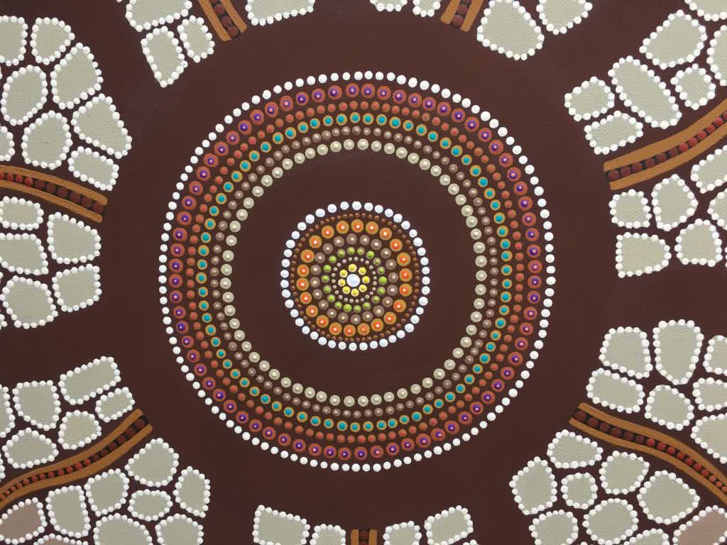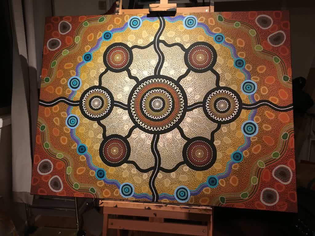 Aboriginal Australia, Ngambra Room, Wanniassa High School. Acrylic on wooden board, 2011.