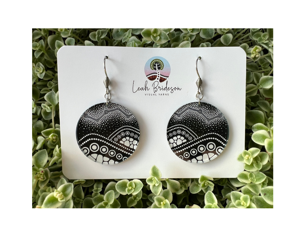 dhawun gunagala (country, sky) is a representation of the night sky interconnected with and reflecting country. Our ancestors look down and guide our journey giving us strength to care for country and keep our culture alive. We look up to them with gratitude, for paving the way and keep their spirit alive.