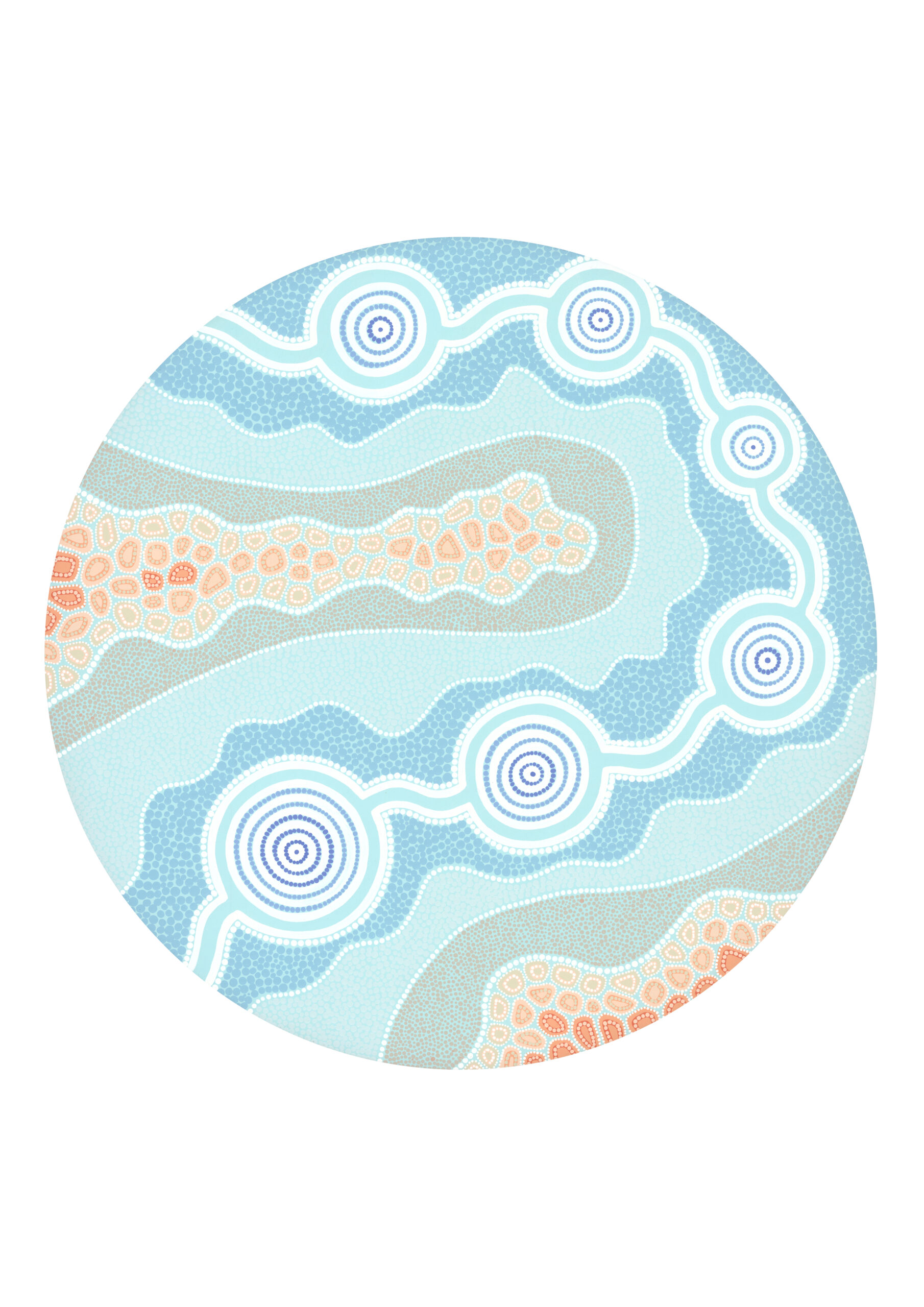 Ocean Edge represents the flow and relationship between land and ocean from an aerial perspective. There is a lot happening in our lives, we sometimes forget to slow down and we lose the flow. Relating the constant tide coming in and out and the untiring flush of waves to the ups and downs in our lives puts things in perspective. Looking out to the ocean reminds me to take a breath, take a step back, ground my feet in the Earth, focus on family and what is important right now, and find a better flow to the busyness of life. The first rush of salt water over my feet as I step in to the ocean is a feeling of freedom.